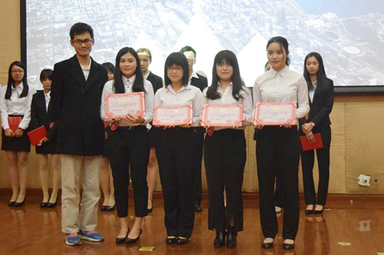 在观看比赛的过程中,嘉宾评委们不时交流意见,整个会场气氛轻松活跃,掌声不断。比赛环节结束后,何德生老师就本次英语口语技能大赛决赛进行点评与总结,他充分肯定了各组选手的实力,赞扬了选手们的创造力与临场应变能力,并发表了自己对举行本次比赛的看法。最终,The Walking Beauties和LOF荣获三等奖,Horsemen荣获二等奖,E pluribus Unum 荣获一等奖,而来自大一的赵倩怡同学荣获最佳风采奖。