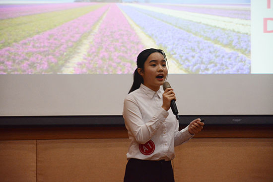 为了检验选手们的应变能力,比赛特意安排了项目介绍环节。该环节中,各队伍分别代表四家公司,他们将对评委进行新项目的推介,以得到股东的投资,该环节包括项目视频展示、公司背景陈述以及项目推介演讲。选手们清晰流利地描述了产品的功能特性,更展示自己深厚的英语表达能力,赢得观众们阵阵掌声。
