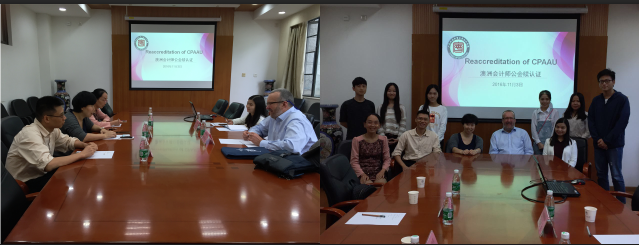 2016年11月3日下午,澳洲会计师公会学术认证顾问Ron Wolley、澳洲会计师公会业务拓展经理麦婷英(Rachel)来访我院,就续认证项目与我院教师代表和学生代表在我院会议室101进行了深入访谈。蒋基路副院长向澳洲会计师公会代表详细地介绍了美高梅mgm1888公司官网的发展变革、教学情况,美高梅mgm1888公司官网会计、审计与财务管理三个专业的课程设置、生源、学生发展和师资的异同,双方就补充认证财务管理专业课程进行了探讨和规划。随后,我院六位学生代表与Ron Wolley进行了沟通交流。