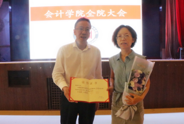 田霞、杨海蓉老师在岗工作几十年,本学期办理退休手续,光荣退休。余鹏翼院长向两位兢兢业业、教书育人的教师赠送鲜花表示感谢,并颁发荣誉证书。两位老师表示感恩学院关怀,祝愿学院发展越来越好。