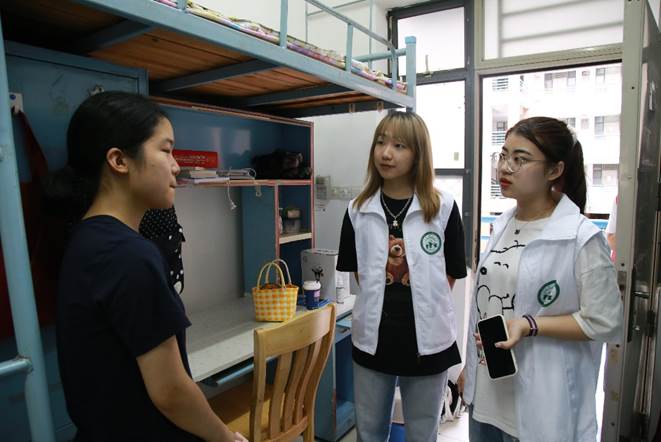 下午,大批新生已陆续返校,在宿舍进行内务清洁,新生各班班导前往宿舍探望,欢迎新生们的到来,并给予新生帮助,方便新生尽快了解学校相关情况,并告知一些新生入校的注意事项,让新生尽快适应大学生活。