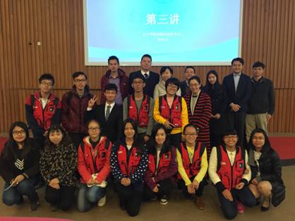 在随后的主题发言中,万宁中国高级财务经理梁志斌先生从“产品、服务成本核算及定价”、“预算与战略、决策管理”、“投资和筹资管理”、“绩效管理”四个方面为同学们介绍管理会计在企业中的作用,并与财务会计的工作内容进行了多维度的对比。花旗金融副财务总监蔡健先生围绕金融外包和金融创新两方面展开介绍,描述了银行业务的前台、中台和后台分工,阐释了银行服务外包行业发展的关键因素,展望了未来银行在电子化、自助化、网络化、移动化的特征,以及“四化”所需要的关键金融科技,最后提出,无论同学们将来从事任何职业,都需要informative(信息处理), integrity(诚实守信), creative(创新进取), self-planning(自我规划)这四项至关重要的软技能。