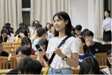在观众提问环节,同学们踊跃举手发言,分享嘉宾耐心细致地回答问题。